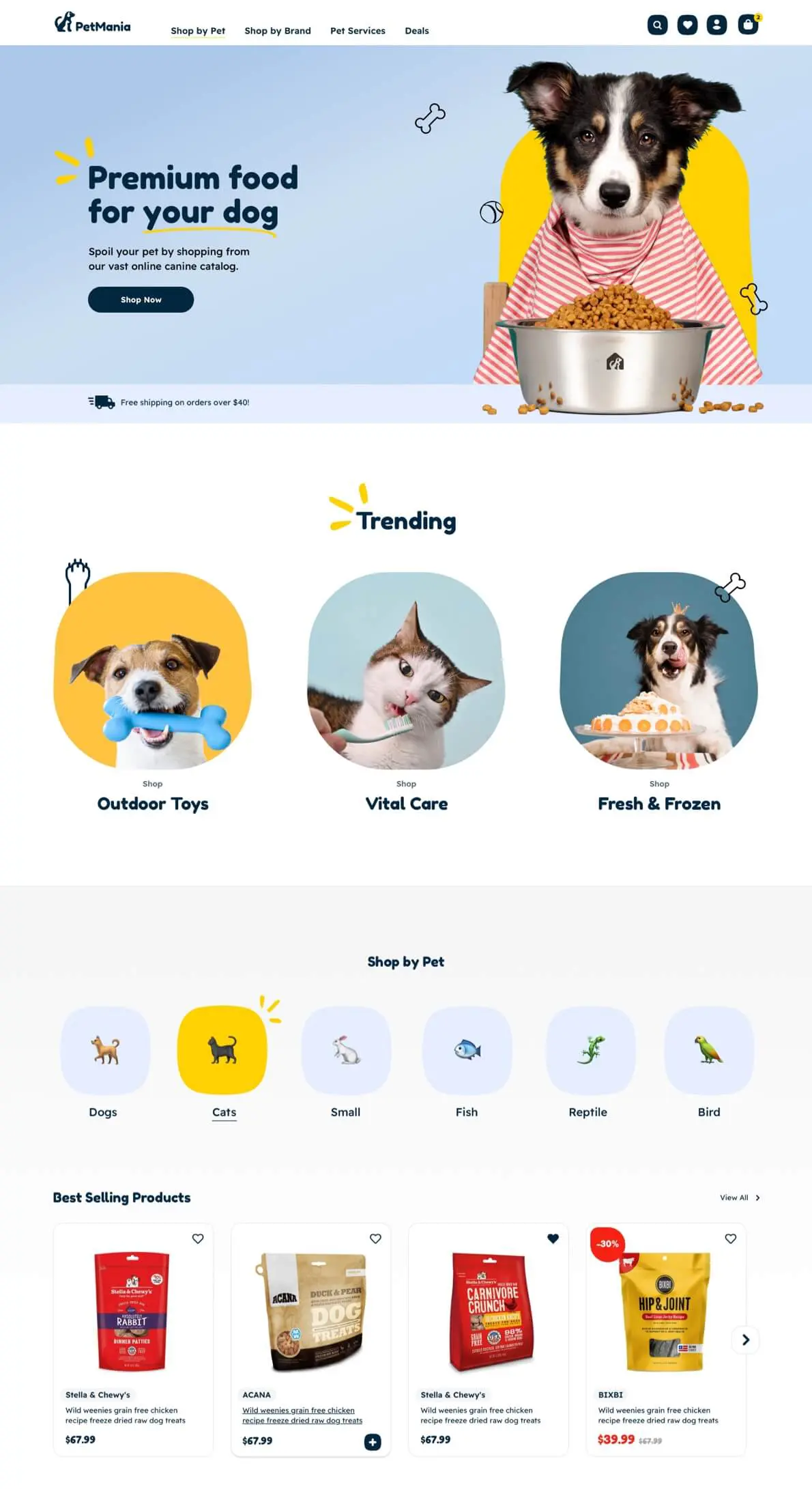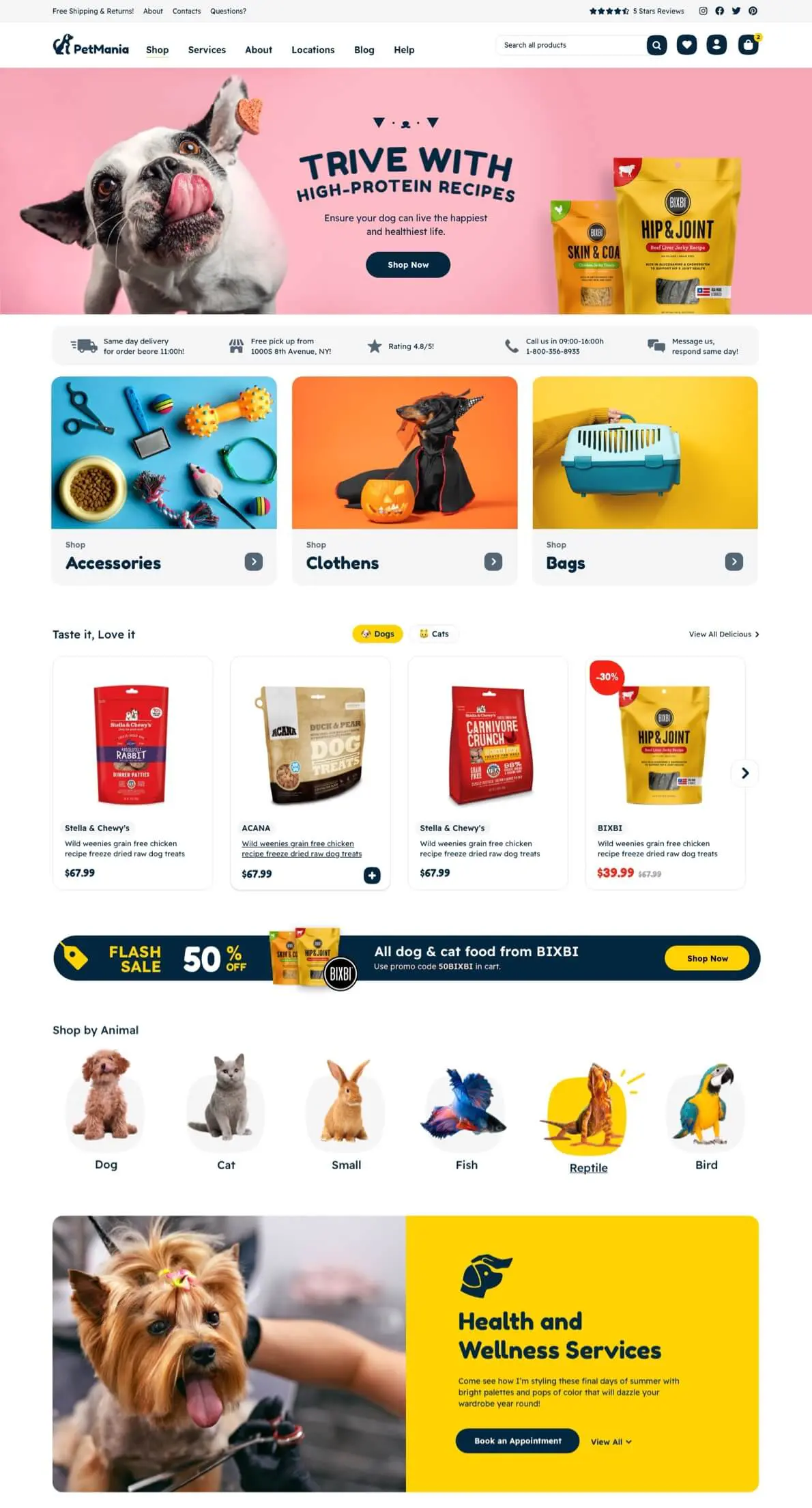 PetMania is a charming, modern eCommerce WordPress theme built with having in mind the actual needs of businesses operating in this segment, their furry clients and caring pet parents.